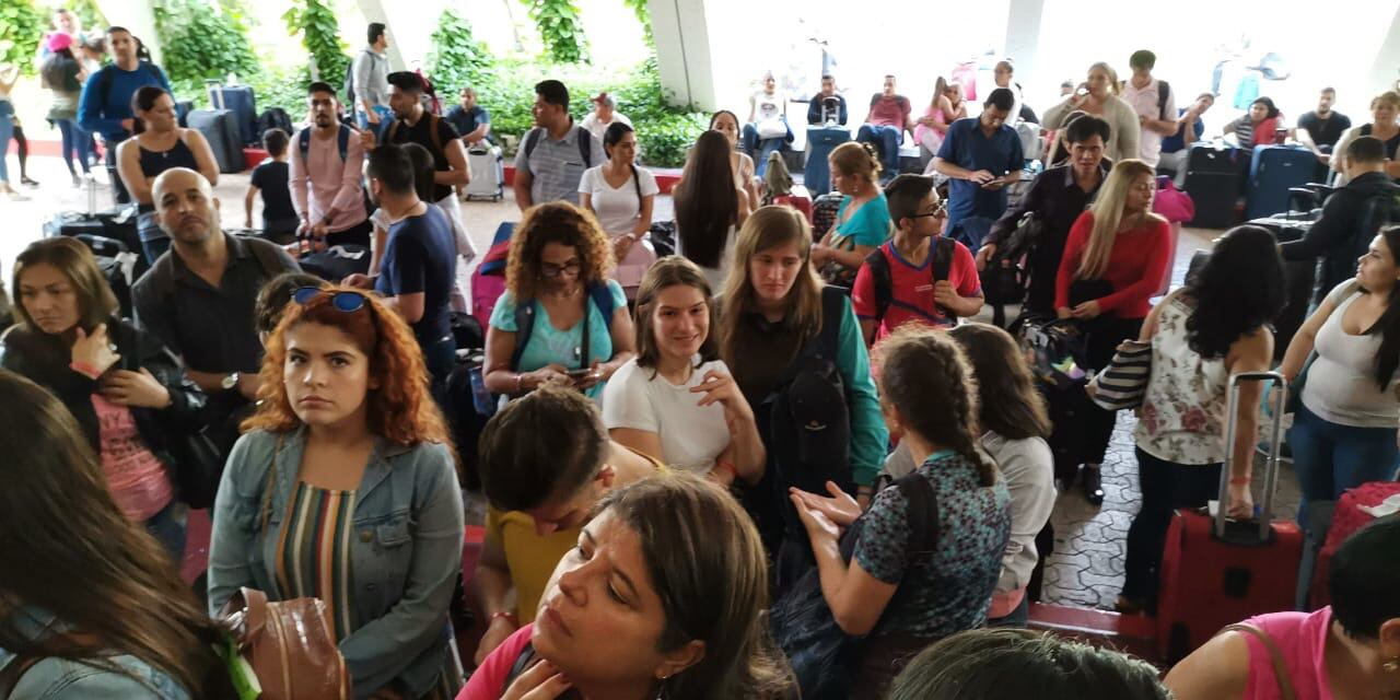 Heiner Burgos, uno de los afectados, circuló videos y audios que mostraban a muchos niños y adultos mayores y que a eso de las 10 a. m. ya tenían casi cuatro horas de estar en el sitio de hospedaje sin que su situación se resolviera.