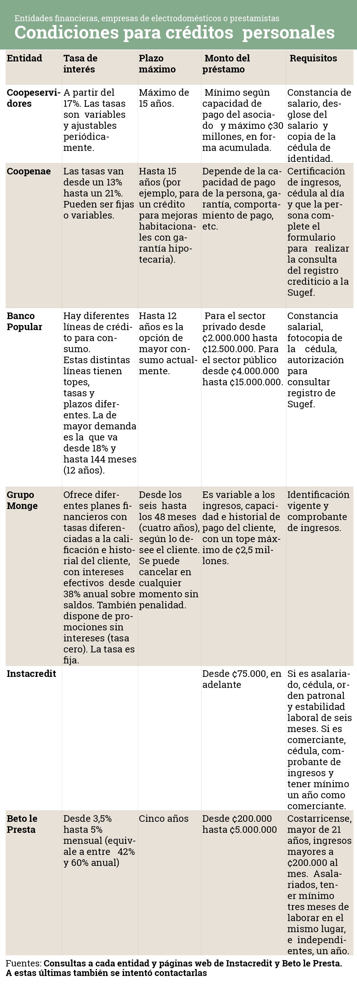 Los intereses en este tipo de créditos suelen ser más altos. Vea tabla abajo