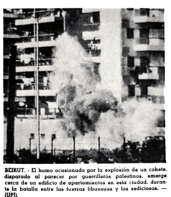 Damasco. Varios aviones de combate libaneses atacaron dos posiciones de guerrilleros palestinos cerca de la frontera con Siria. Un portavoz del comando guerrillero informó que los ataques ocurrieron a las 6 p. m. en las áreas de Aiha y Aita El Fakher, ubicadas a ocho y cinco kilómetros de la frontera con Siria.
