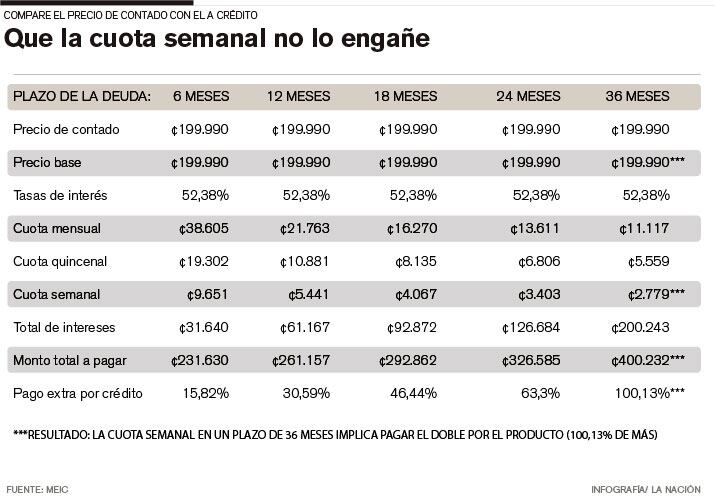 Pagar durante tres años una cuota semanal de ¢2.779 por un electrodoméstico que tiene un precio de ¢199.990, podría parecer un buen negocio.