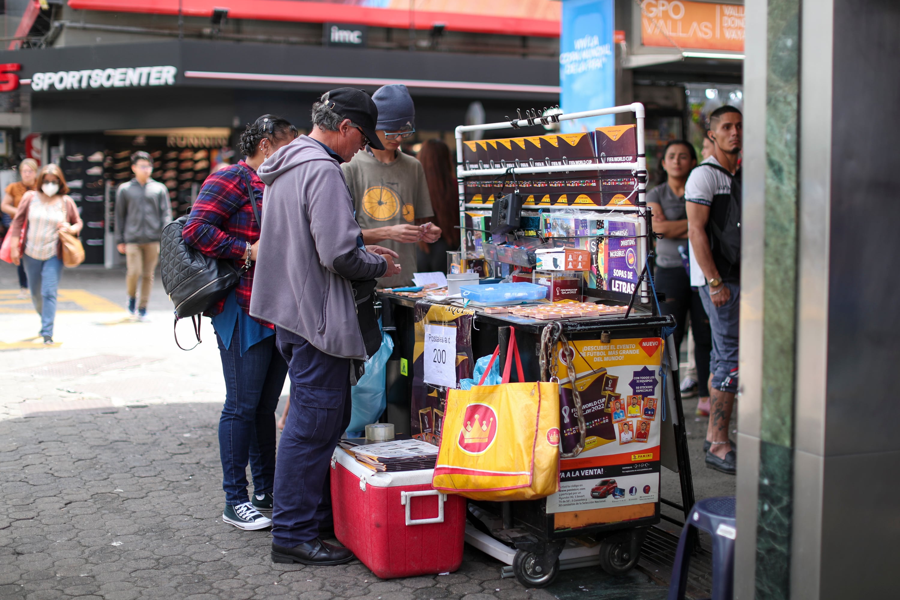 En San José, personas que habitualmente venden lotería, frutas, ropa, o periódicos aprovechan la temporada mundialista para poner a la venta sobres y postales sueltas, como forma de generar un ingreso adicional a su trabajos. Aunque la competencia por atraer clientes es intensa.
