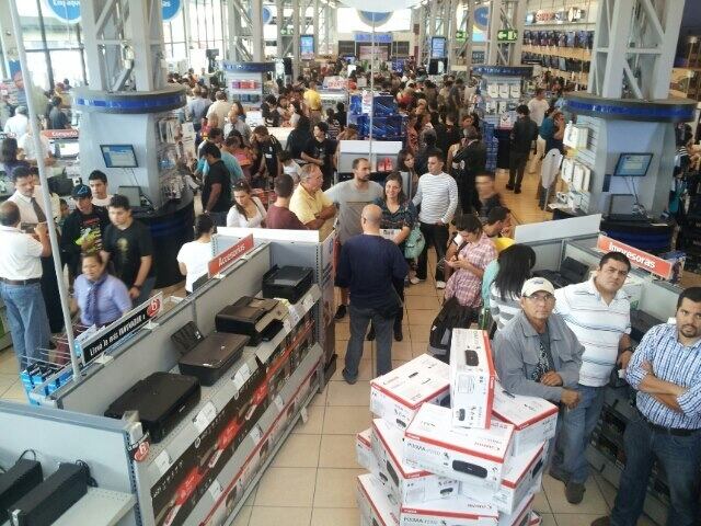 Juan Carlos Morales llegó a la tienda a las 7 a.m. para comprar una computadora portátil. Reconoció que le ofrecieron un buen precio, sin embargo reclamó que la filas para pagar y retirar son demasiado largas. "Empiezo a pensar que el descuento no es tal", dijo.