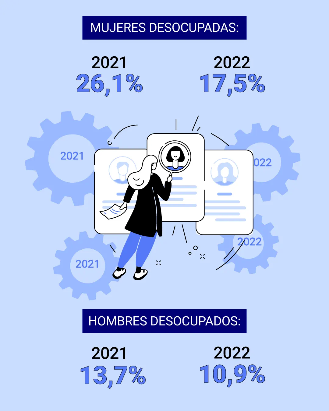 El 13,6% implica que para el momento de la encuesta la población desempleada del trimestre se estimó en 330.000 personas, de las cuales 158.000 son hombres y 172.000 mujeres. En forma interanual, la población desempleada disminuyó en 128.000 personas.