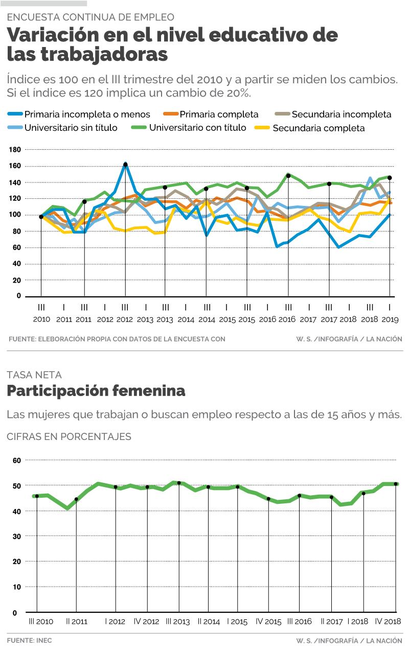 Según la encuesta, entre el primer trimestre del 2018 y el primer trimestre del 2019 se incorporaron unas 159.000 trabajadoras al mercado laboral, de las cuales 127.000 encontraron trabajo y 32.000 pasaron a ser desempleadas.