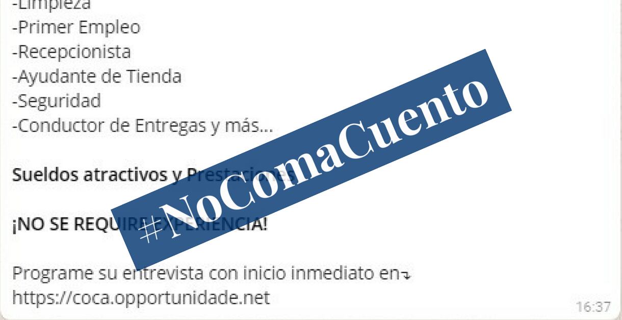 LEA MÁS: #NoComaCuento: Sitio web y página de Facebook difunden ofertas de empleo falsas