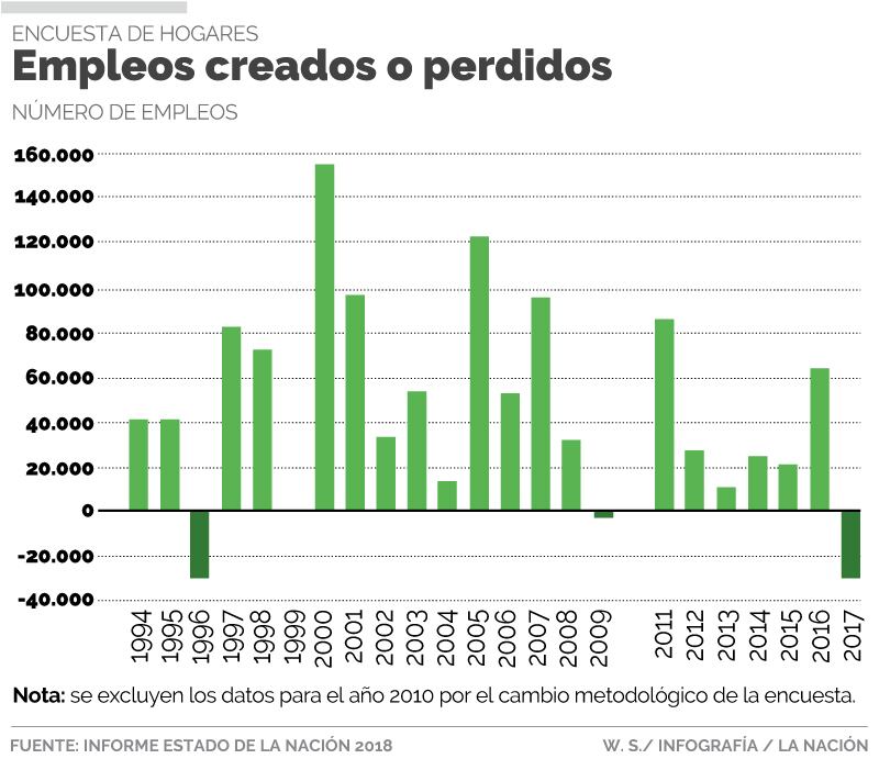 En el 2017 Costa Rica perdió cerca de 30.000 puestos de trabajo, lo cual constituye la mayor reducción de empleos desde 1996.
