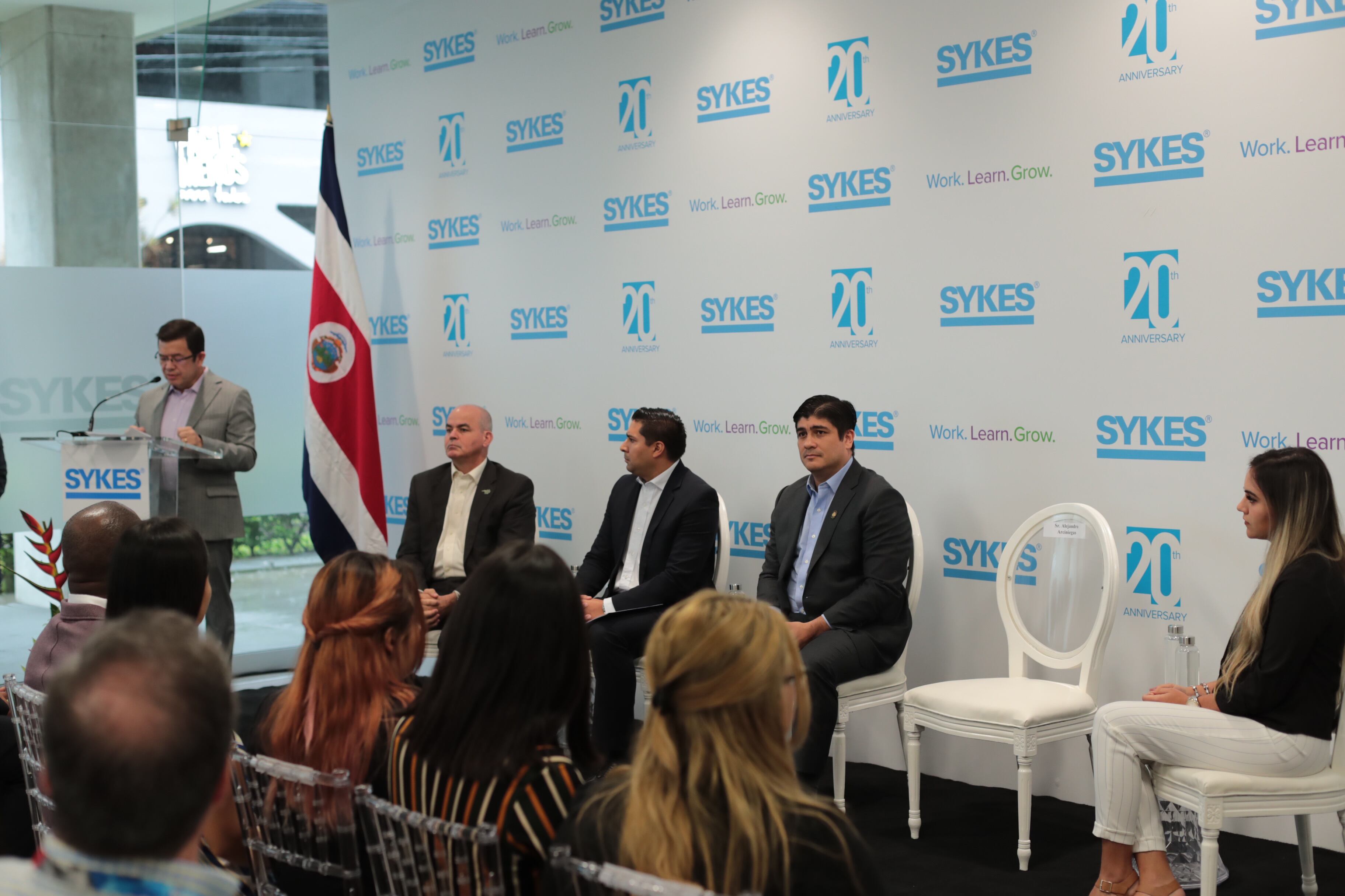 En la actividad participó el presidente de la República, Carlos Alvarado, el gerente de Sykes Costa Rica, Alejandro Arciniegas, entre otras autoridades.