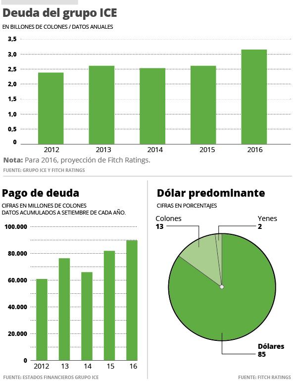 Sin embargo, en un plazo de cinco años, el ICE deberá cancelar ¢ 1,11 billones de su deuda . Además, cada año, la entidad paga los intereses y comisiones sobre los préstamos y bonos de deuda colocados. Hasta setiembre pasado honró ¢89.767 millones a los acreedores, según los estados financieros.