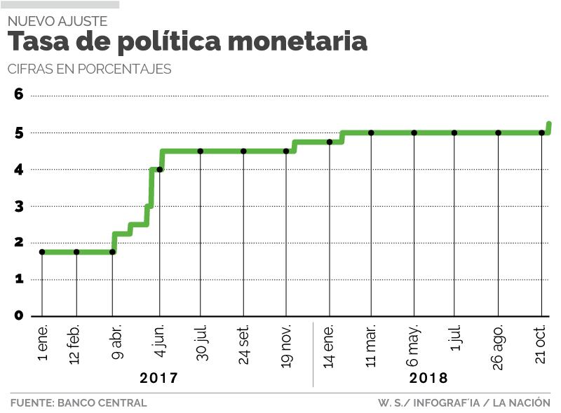 El Banco Central anunció este jueves 1.° de noviembre el aumento de dos tasas de interés claves, con el fin de frenar las presiones sobre la inflación y el tipo de cambio.