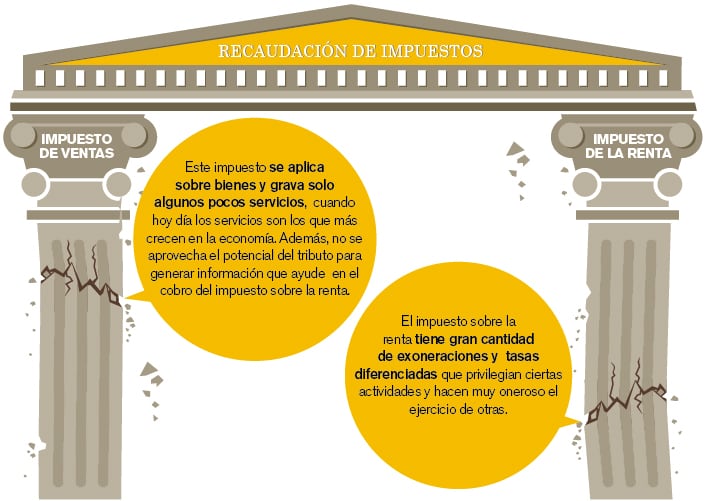 Las dos principales columnas del sistema tributario costarricense: el impuesto de ventas y el tributo sobre la renta, están resquebrajadas.