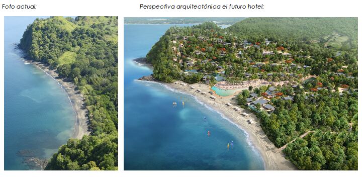 La iniciativa turística es un desarrollo ubicado en el Golfo de Papagayo, en Guanacaste, que cuenta con 432 hectáreas de terrenos, de las cuales 31,6 hectáreas corresponden a propiedades otorgadas en concesión por parte del Instituto Costarricense de Turismo (ICT).