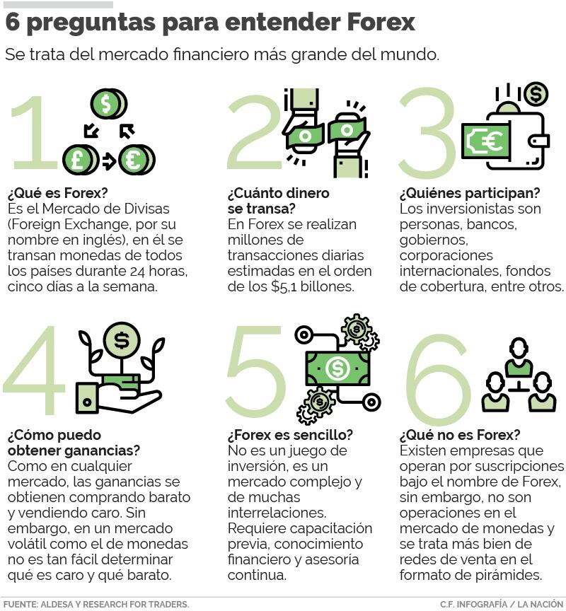 Antes de entrar a Forex cada inversionista debe tener claro que requiere capacitación previa y conocimiento del mercado y que existe el riesgo de perder el dinero.
