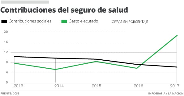 "La recaudación por concepto de contribuciones sociales, principal ingreso de este régimen, está directamente relacionada con la coyuntura económica del país (crecimiento de la producción, nivel de empleo, tasa de inflación, tasa de desempleo, entre otras), y aunque muestra un porcentaje de crecimiento positivo, presenta una tendencia descendente, ya que pasó de un 12,2% en el 2011 a un 6,4% en el 2017", señala la Contraloría.