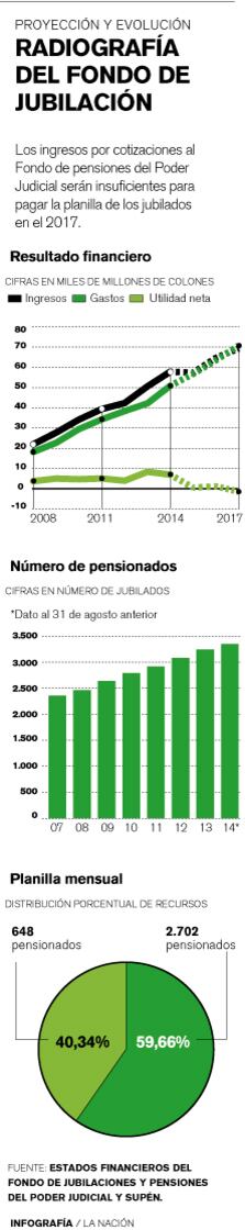 El Fondo de Jubilaciones y Pensiones del Poder Judicial fue creado en 1937 y cuenta con garantía estatal. En agosto anterior tenía 3.350 retirados y un total de 12.526 empleados activos y una reserva de ¢390.000 millones, según los estado financieros.