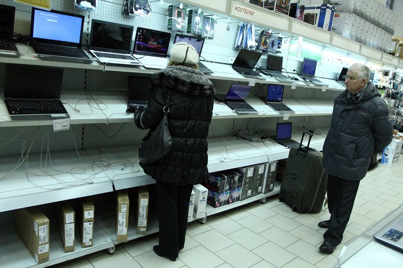 El efecto inmediato de la caída del rublo fue la decisión de algunos proveedores de cesar sus entregas, en lugar de librarse a inciertos aumentos de precio: por ejemplo, Apple cerró su tienda en línea, Ikea suspendió durante dos días sus ventas de cocinas, y los automóviles Opel y Chevrolet dejaron de ser entregados a los concesionarios.