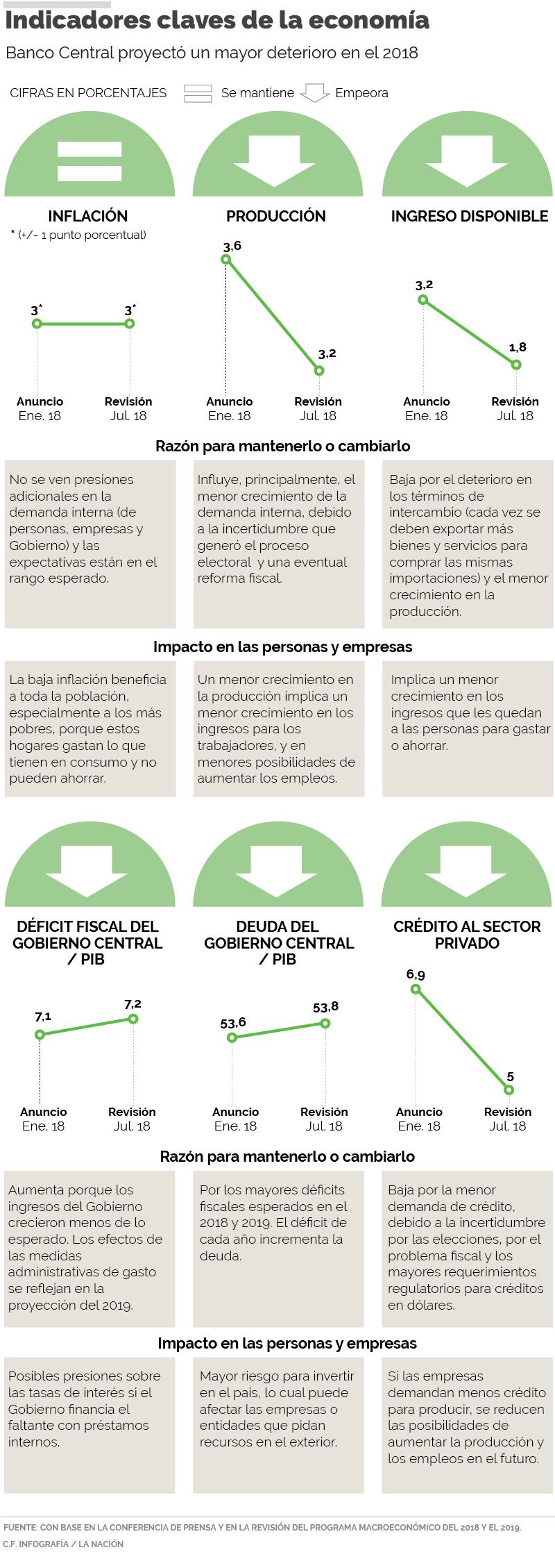 En la revisión del Programa Macroeconómico 2018 y 2019, el Banco Central ajustó a la baja el crecimiento esperado en la producción para el 2018, de 3,6% que había anunciado en enero pasado, a 3,2%, lo cual es una señal de que los ingresos de los trabajadores crecerán menos y se reducen las posibilidades de generar más empleos.