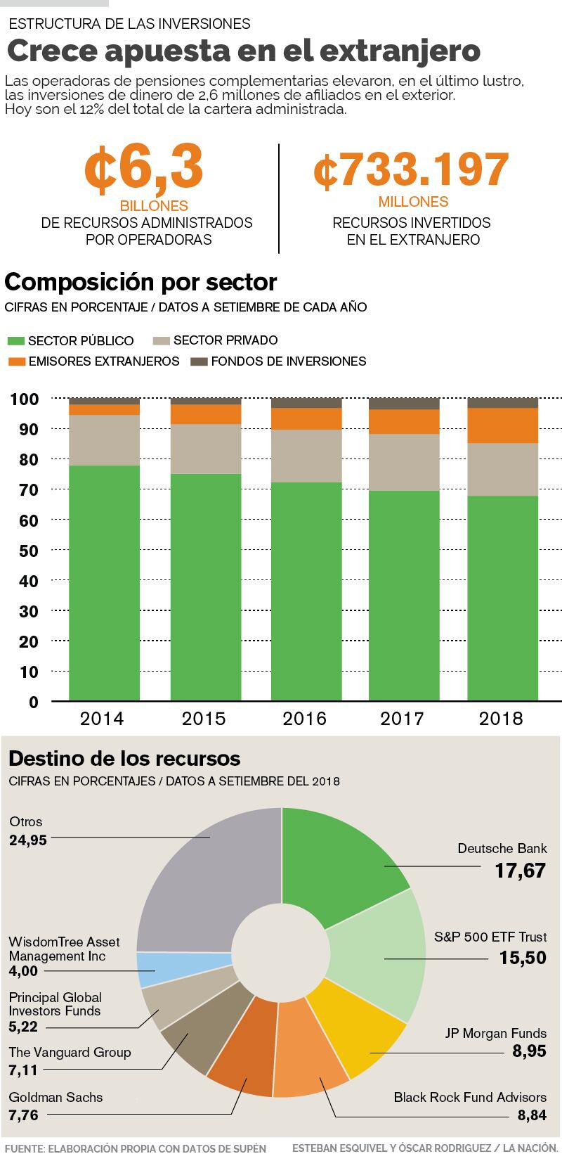 Sin embargo, al mismo periodo del 2014, la porción del portafolio en el exterior era del 3%, según datos de la Superintendencia de Pensiones (Supén).