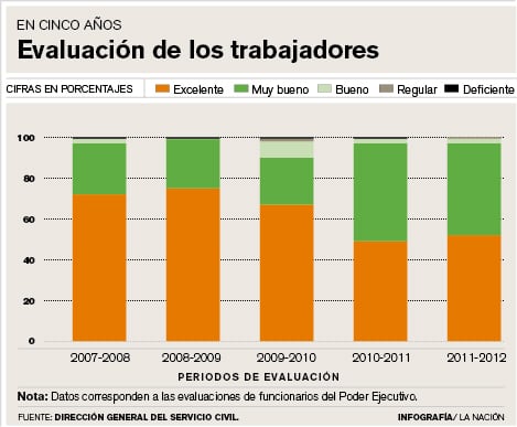 Según los datos suministrados por la Dirección General del Servicio Civil, entre el 2007 y el 2012, en promedio, el 99% de los trabajadores fueron calificados como mínimo de buenos y, por lo tanto, recibieron el premio.