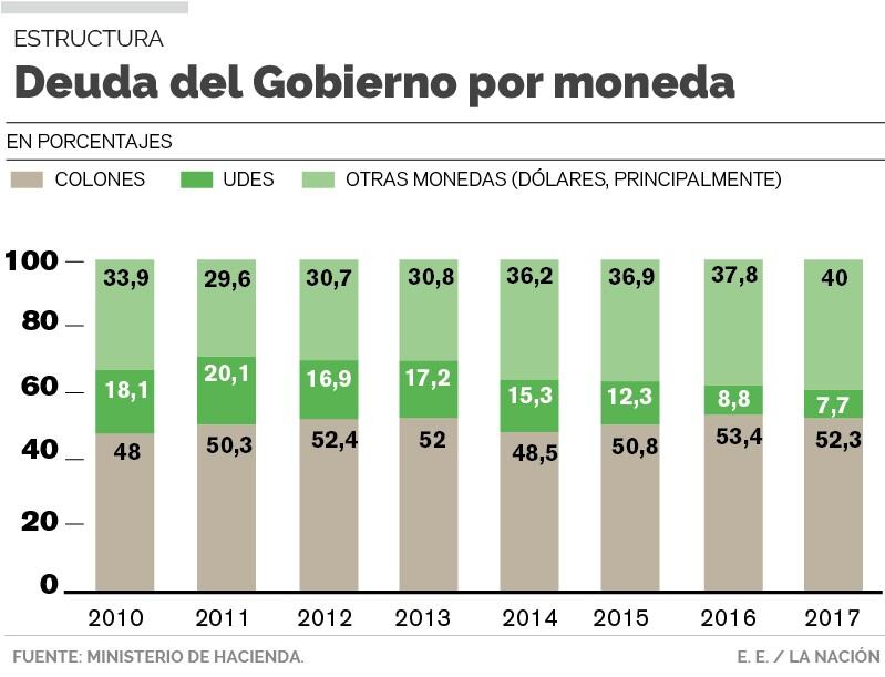 Es por ello que el porcentaje de la deuda en dólares subió de 37,8%, en el 2016, a 40% en el 2017, con lo cual se refuerza una tendencia que viene desde el 2011, cuando representaba un 29,6% del total.