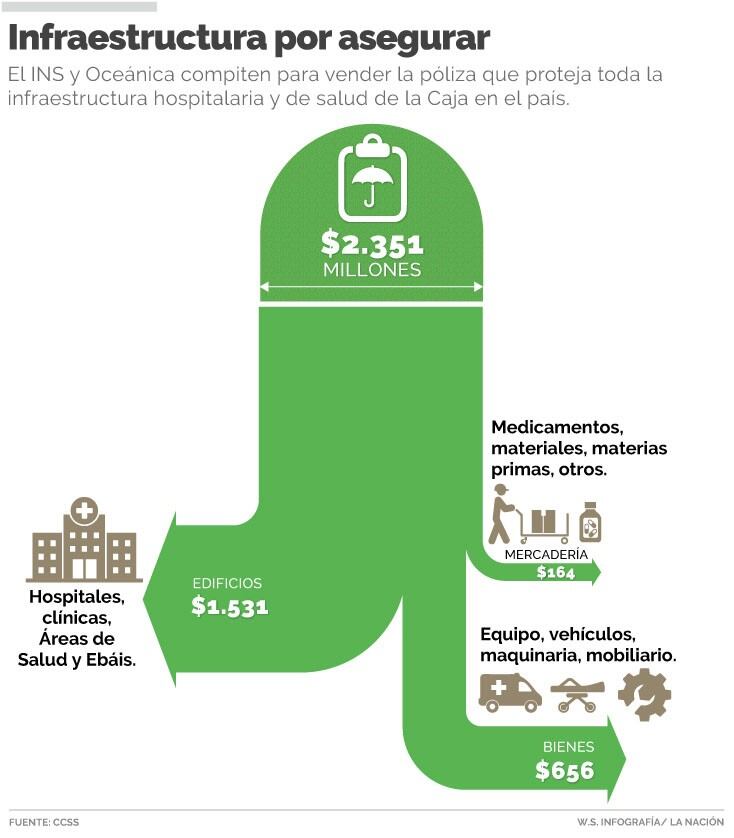El Instituto Nacional de Seguros (INS) y Oceánica de Seguros compiten para obtener la millonaria póliza para asegurar la red hospitalaria y de salud de la Caja Costarricense de Seguro Social (CCSS) ante cualquier siniestro en los próximos dos años.