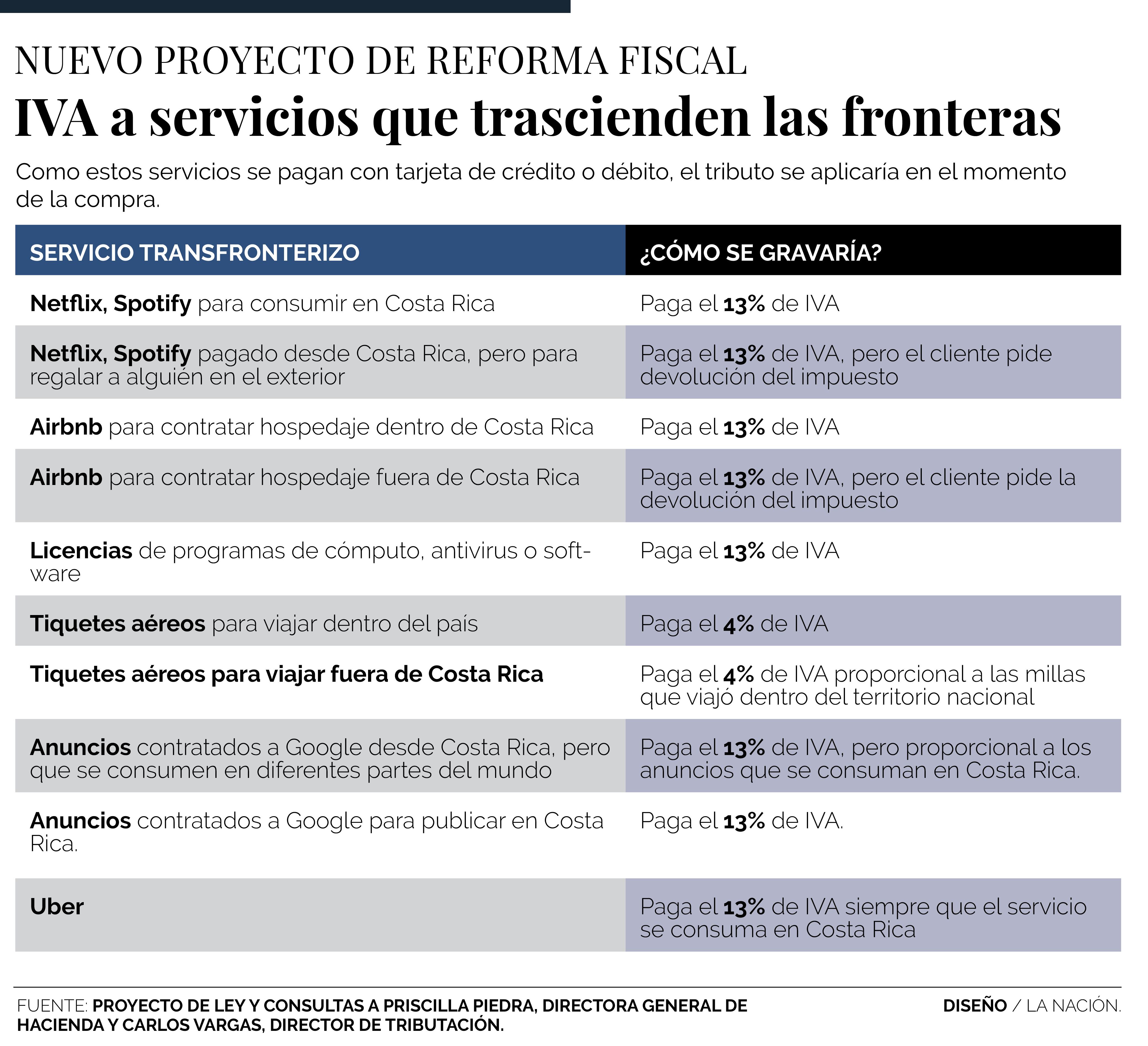 Entre los nuevos servicios que grava el proyecto se encuentran los transfronterizos, que son aquellos que se compran desde Costa Rica pero en el exterior, y que se consumen total o parcialmente en el territorio nacional, como el caso de Netflix.