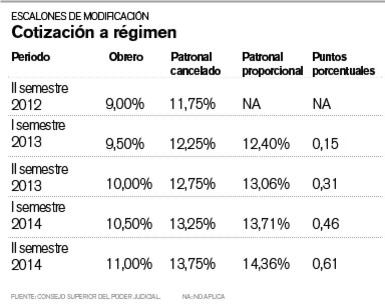 Según el análisis, la cotización del Poder Judicial como patrono debe subir en 0,61 puntos, y la estatal, en 0,09 puntos.
