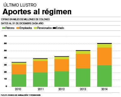 Entre tanto, los trabajadores y jubilados aportaron ¢24.500 millones y ¢5.200 millones, respectivamente, según los estados financieros del régimen de pensiones.