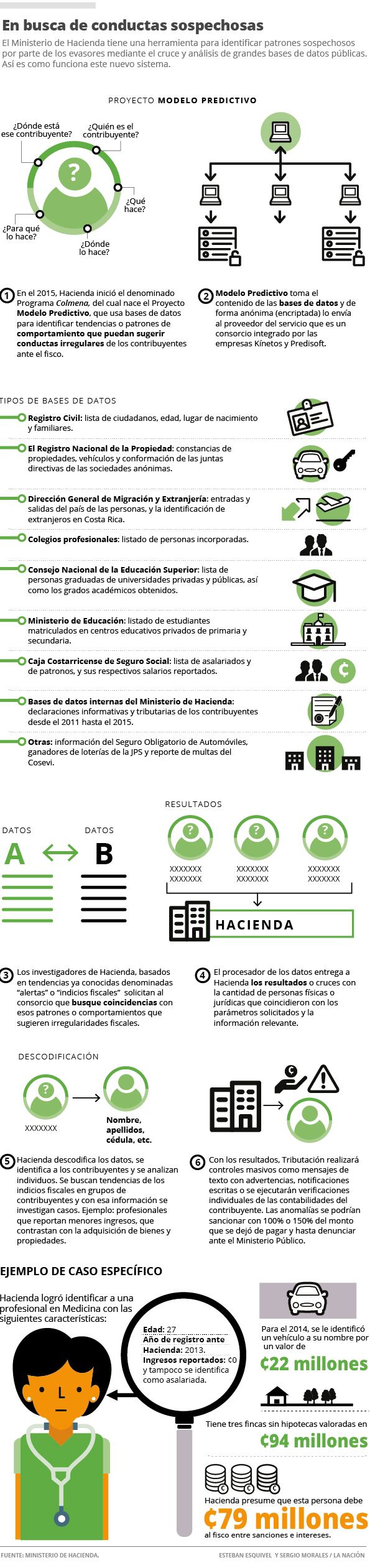 Todo es parte de un proyecto denominado Modelo Predictivo, que consiste en la contratación de una empresa que se encarga de proveer los cruces de los datos de manera anónima y entregar los resultados a Tributación.