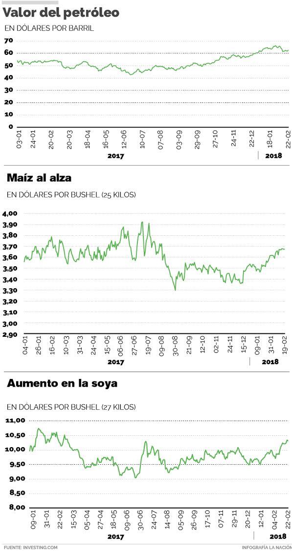 En tanto, la soya subió 8,7% entre el 21 de diciembre del año pasado y este 22 de febrero, mientras que el petróleo aumentó 36% entre el 30 de agosto del año pasado y, también, el 22 febrero.