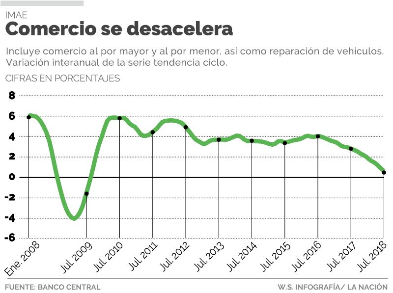 Según la información que publicó el viernes 9 de noviembre el Banco Central, dicha actividad pasó de tener tasas de crecimiento de 4% en setiembre del 2016, respecto al mismo mes del año anterior, a apenas un 0,7% en setiembre del 2018, respecto al mismo mes del año anterior.