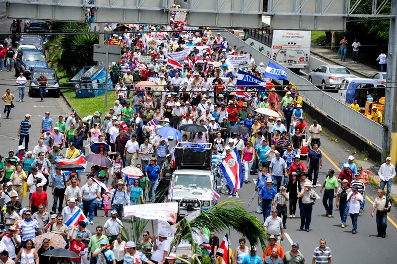 El enfrentamiento generó que el martes pasado los agricultores realizaran una marcha en San José, desde la Asamblea Legislativa hasta la Casa Presidencial, en Zapote.