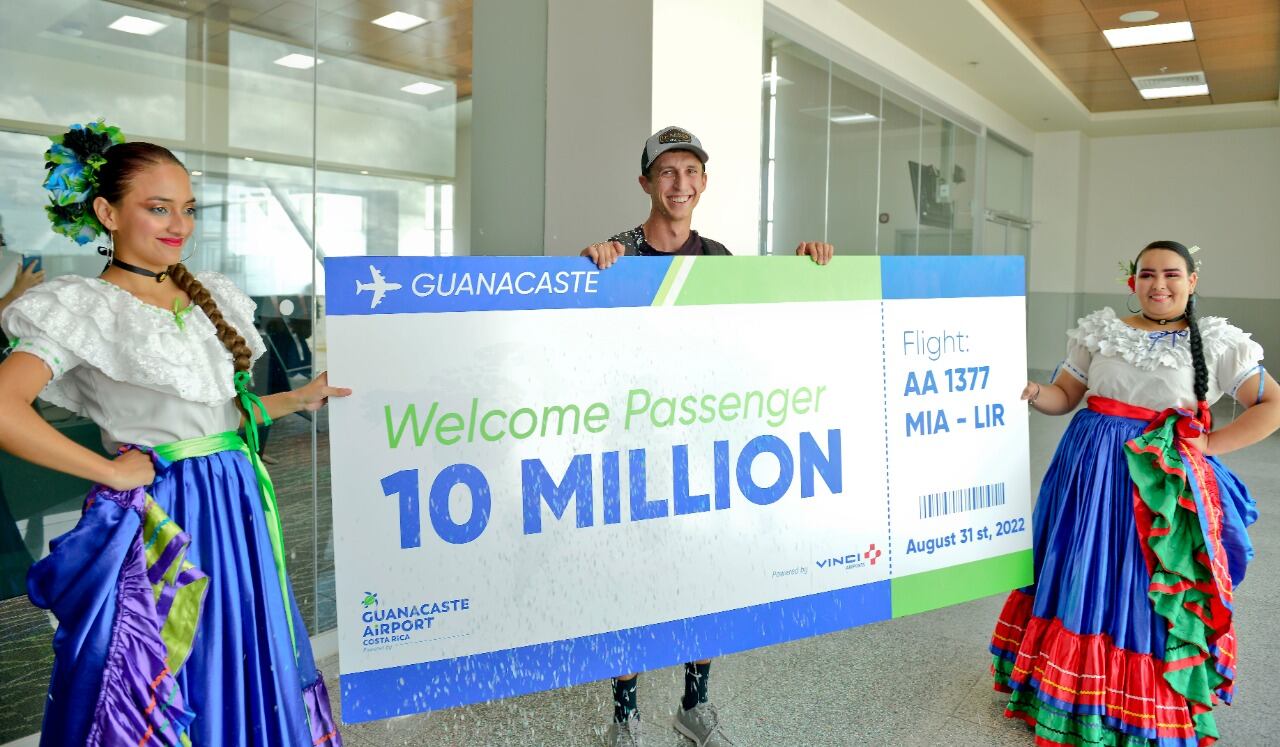 Este miércoles 31 de agosto quedará marcado en la historia del Aeropuerto Daniel Oduber, ubicado en Guanacaste, al alcanzar la cifra de 10 millones de pasajeros atendidos desde su inauguración.