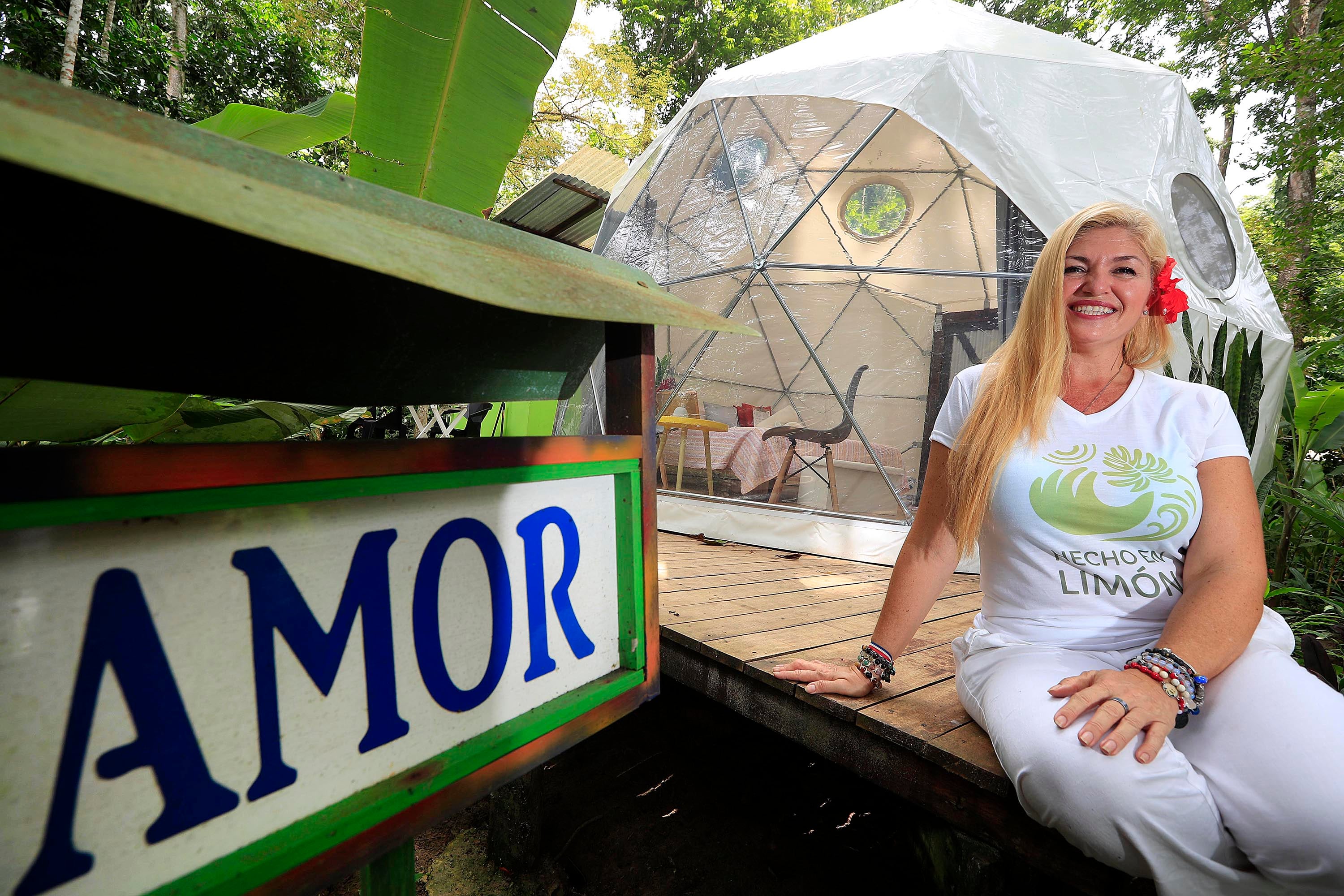 Despertar en un domo geodésico en medio de la selva caribeña es la propuesta de Faith Glamping Dome Costa Rica, uno de los 80 emprendimientos seleccionados para la iniciativa Hecho en Limón. Dentro de esta red, la propietaria del hospedaje, Andrea Sánchez, encuentra proveedores para su operación y también aliados para promover iniciativas que potencien el bienestar en la provincia.