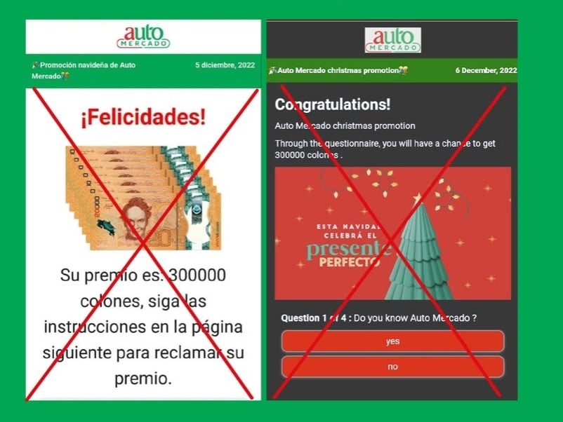 Auto Mercado informó, este viernes, de que están circulando informaciones falsas con supuestos premios o sorteos a nombre de la empresa, que podrían resultar en un fraude.