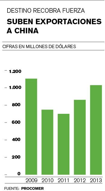 En el 2013, los envíos de bienes a China cerraron en $1.029 millones, 19,7% más que en el 2012, cuyo monto fue de $860 millones.