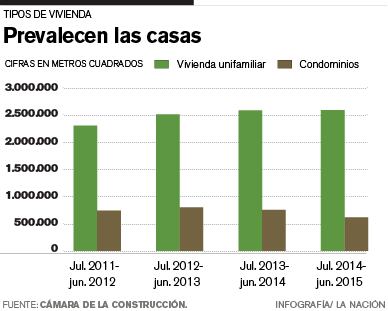 En los datos para todo el país aportados por la Cámara Costarricense de la Construcción, la vivienda unifamiliar, empero, se mantiene a la cabeza sobre los condominios.