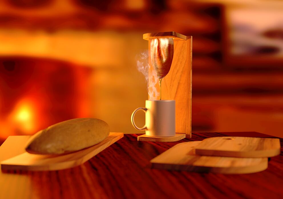 También con la colección Grano de Oro, reciclan la madera y encapsulan en el centro granos de café tostados que luego son cubiertos con resina. Además, para conservar el legado, mantienen la elaboración de artesanías típicas con la colección Tradición y color.