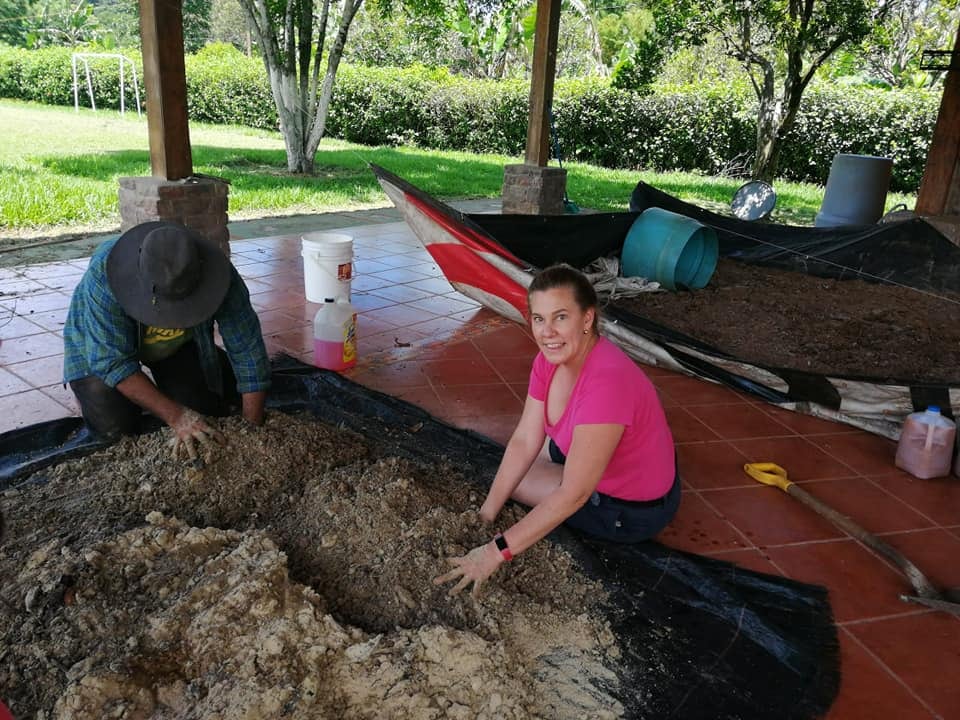 “A través del aserrín estamos produciendo abono orgánico con los microorganismos que ya tenemos y con la leña producimos carbón”, indica Sandra Chaverri.