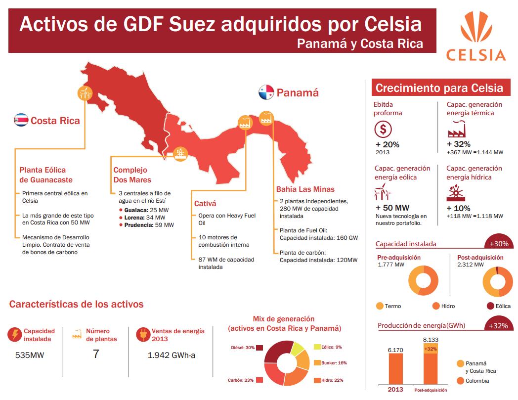 La empresa colombiana Celsia llegó a un acuerdo con GDF Suez Latin America, con sede en París, para la compra de sus activos en Costa Rica y Panamá por $840 millones.