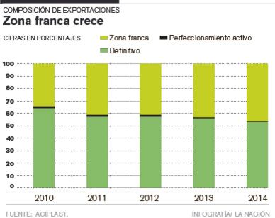 En tanto, las de zona franca pasaron de $82 millones en el 2010 a $182 millones en el 2014. El alza fue del 122% y, en este caso, el crecimiento fue sostenido.