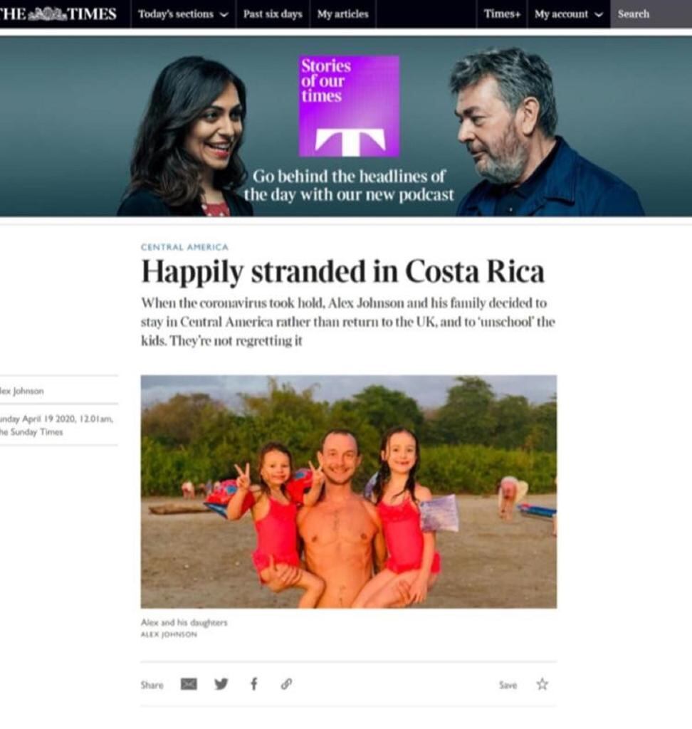 Antes de correr de vuelta a Inglaterra por el cierre de fronteras que provocó la pandemia del COVID-19, la familia Johnson, de Gloucestershire, Inglaterra, decidió extender su estadía en Costa Rica.