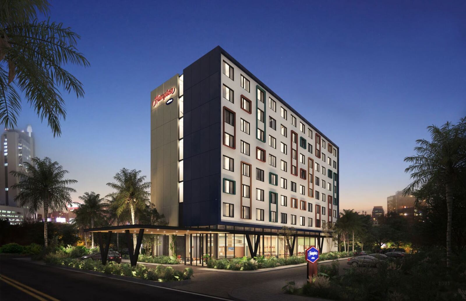 Laura Rodríguez, directora de la división de hoteles de HASA explicó que el hotel está diseñado bajo el prototipo Hampton CALA (Caribe y Latinoamérica), propio de la empresa, el cual está inspirado en tendencias de diseño locales.