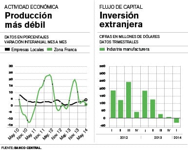 El desempeño del sector bajó por la menor actividad de las empresas instaladas en las zonas francas. Mientras, las compañías locales, crecen en forma leve.