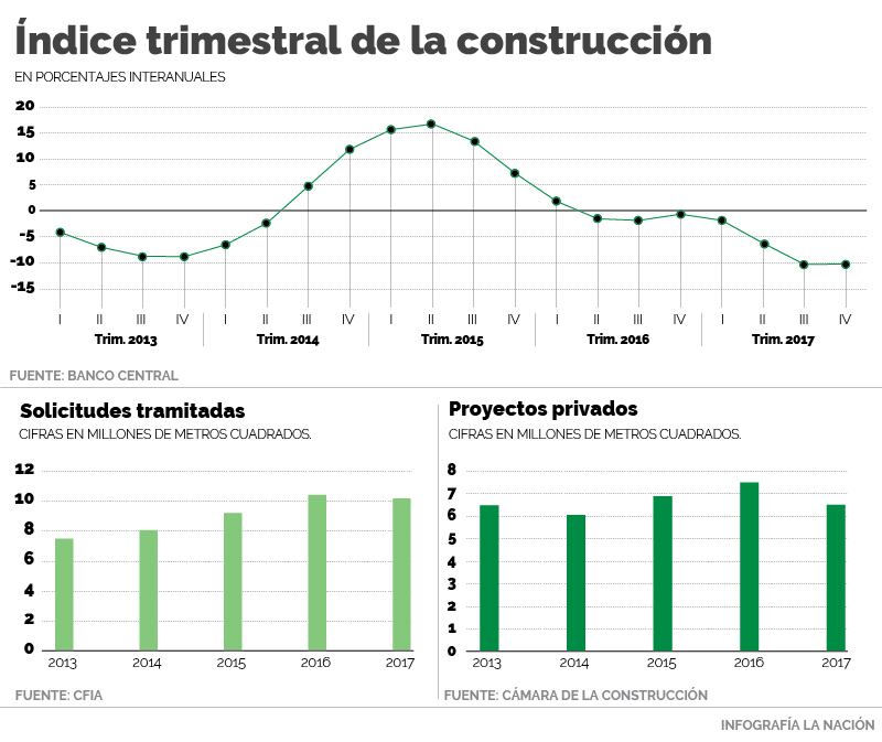 Esta previsión ocurre luego de que la construcción privada en Costa Rica decreció un 10,4% en todo el 2017 respecto al 2016, y un 10,3% en el último trimestre de ese año respecto al mismo periodo del 2016, según el Banco Central. Empero, el gremio y el CFIA coinciden en que es un asunto coyuntural y no una crisis.