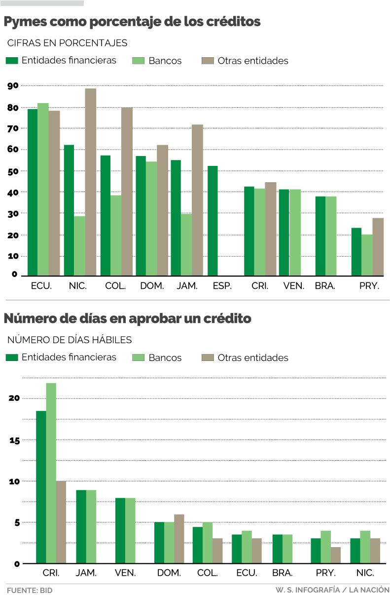 Los trámites de otorgamiento de créditos a pequeñas y medianas empresas en Costa Rica pueden tardar hasta 20 días en el sistema bancario, y 10 días en el sistema no bancario; en ciertos casos esto es incluso cuatro veces más de lo que se toma, en promedio, en los países de América Latina y el Caribe (cinco días).
