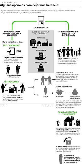 “Igualmente, se puede dejar el legado de usufructo de un bien por medio de testamento y el propietario que aparte recibe este bien lo recobrará cuando muera el usufructuario”, añadió Arroyo.