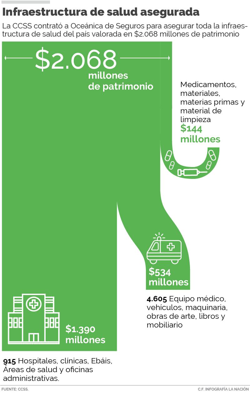 El seguro cubre 915 edificios de la institución autónoma que incluyen hospitales, clínicas, Áreas de Salud, los Centros de Atención Integral de Salud (CAIS), Equipos Básicos de Atención Integral en Salud (Ebáis) y las oficinas administrativas. Todos estos inmuebles están valorados en $1.390 millones.