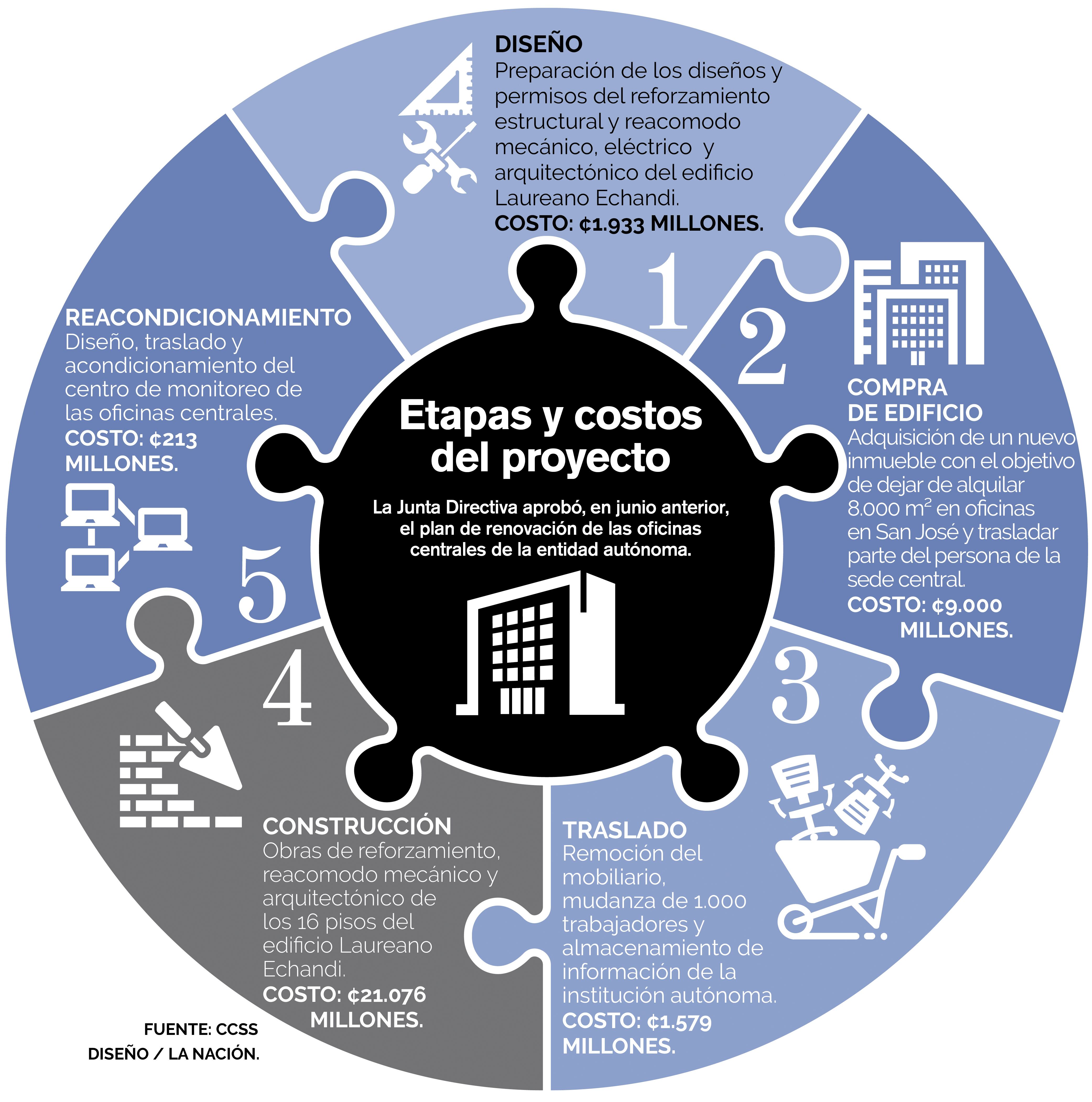 Esta etapa es la más onerosa, pues tendrá un costo de ¢21.076 millones. Según el cronograma aprobado por la Directiva de la Caja, a comienzos de 2021 deberá estar finalizada dicha construcción.