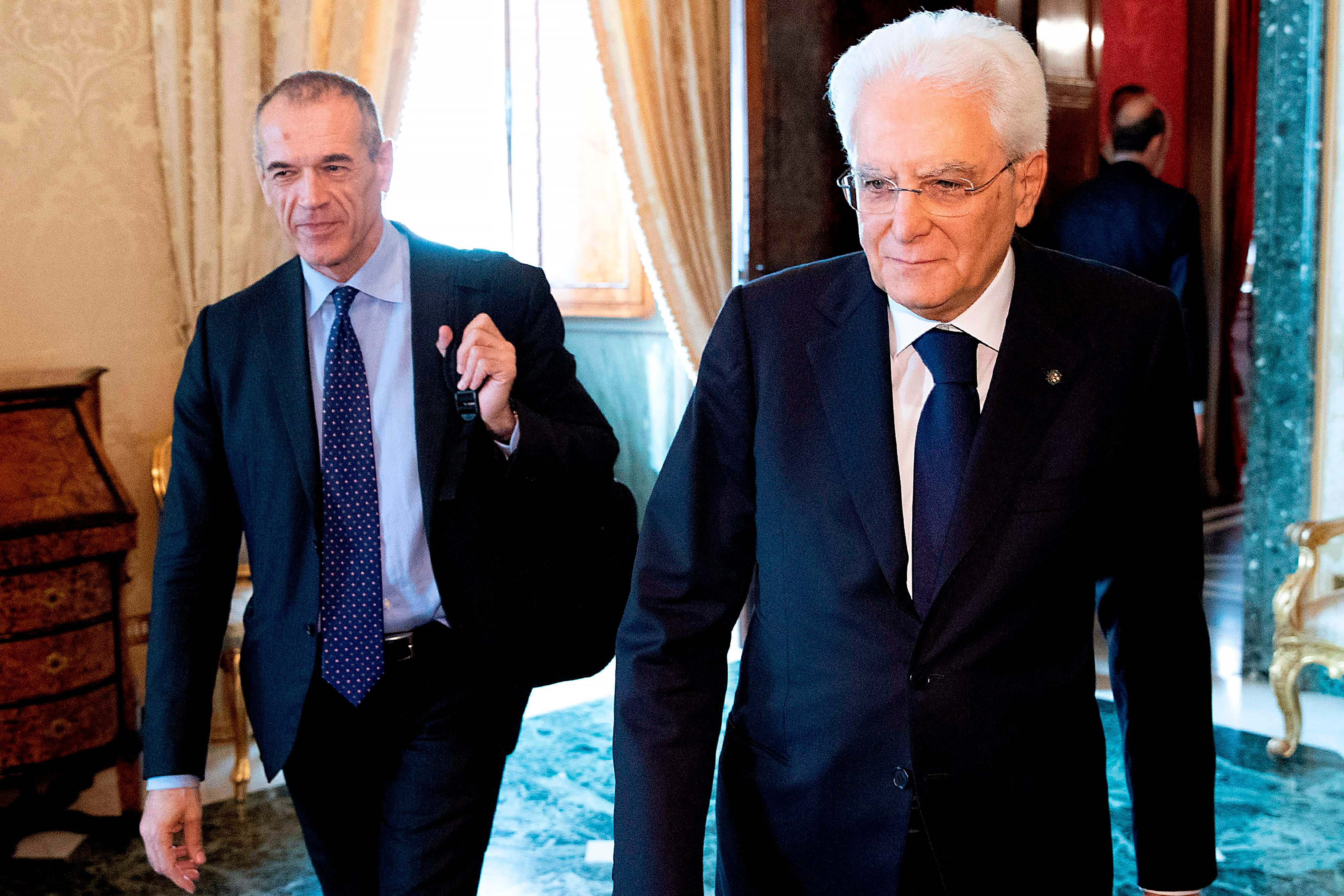 Pero el presidente italiano, Sergio Mattarella vetó el nombramiento del euroescéptico Paolo Savona como ministro de Economía de su gobierno y propuso como primer ministro a Carlo Cottarelli, un exfuncionario del Fondo Monetario Internacional (FMI).