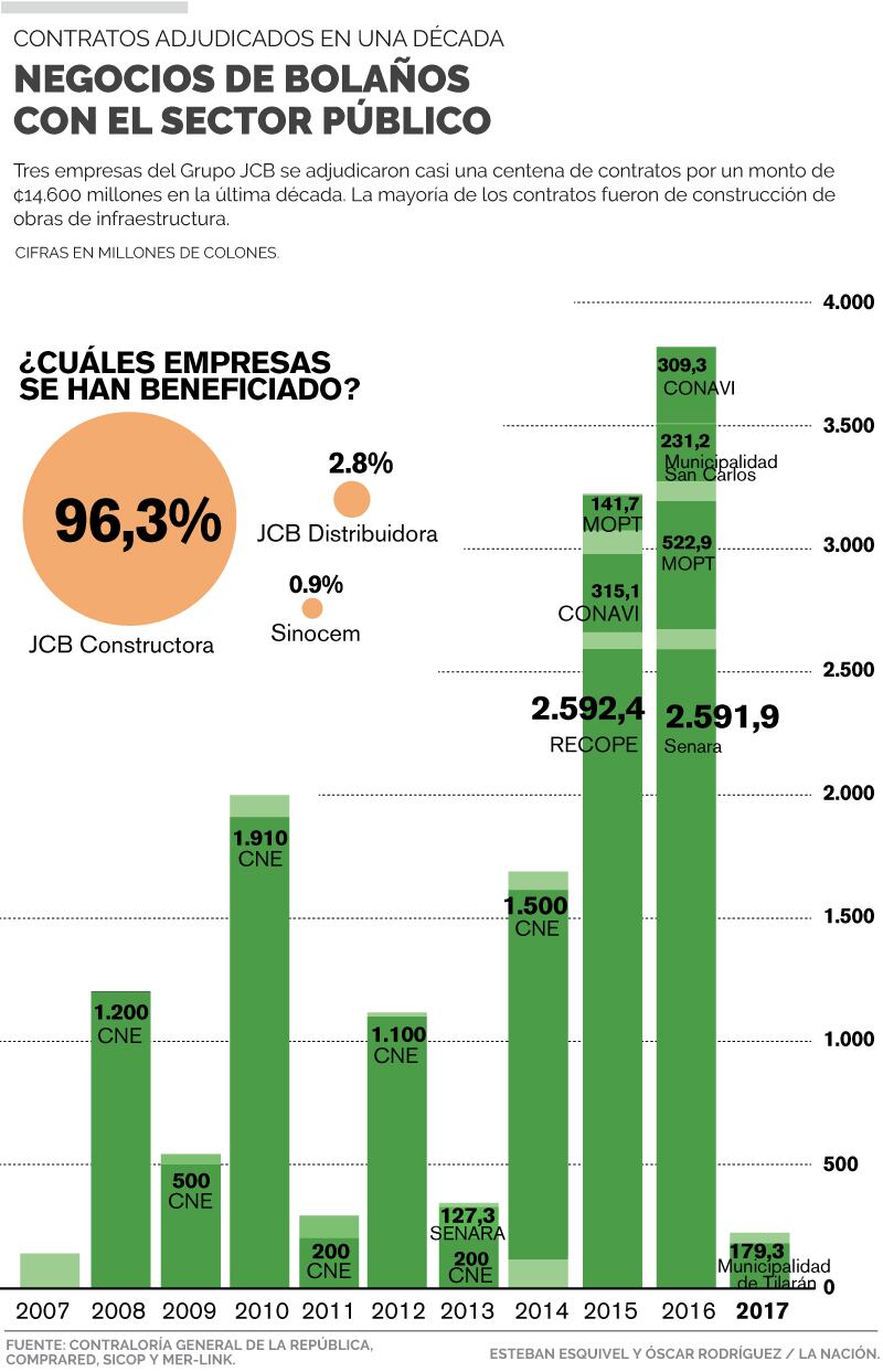 La mitad del monto adjudicado, es decir ¢7.344 millones, se otorgó a las compañías que conforman el Grupo JCB, de Bolaños, en el actual Gobierno.